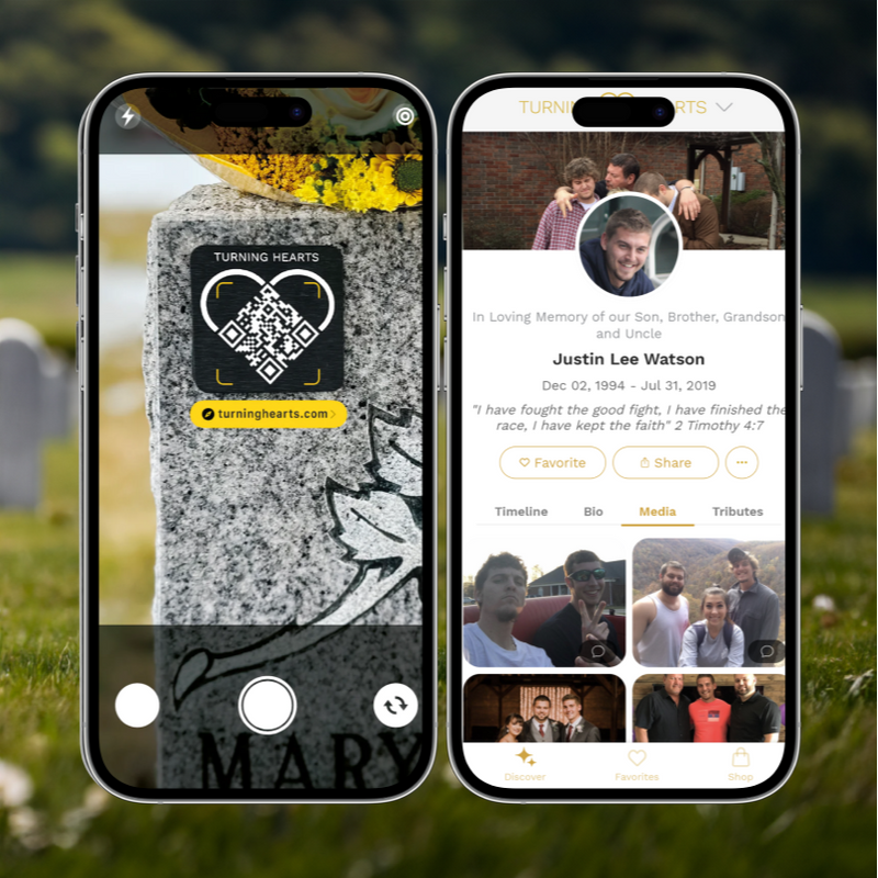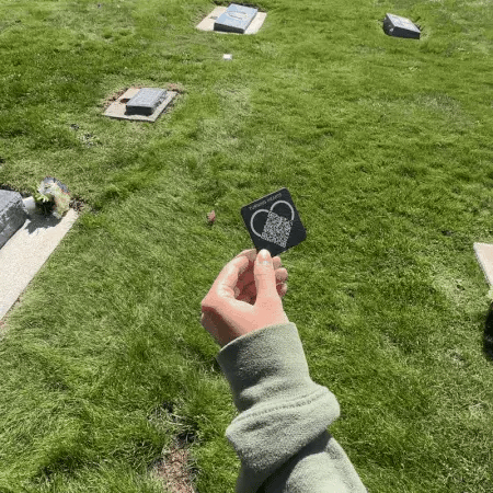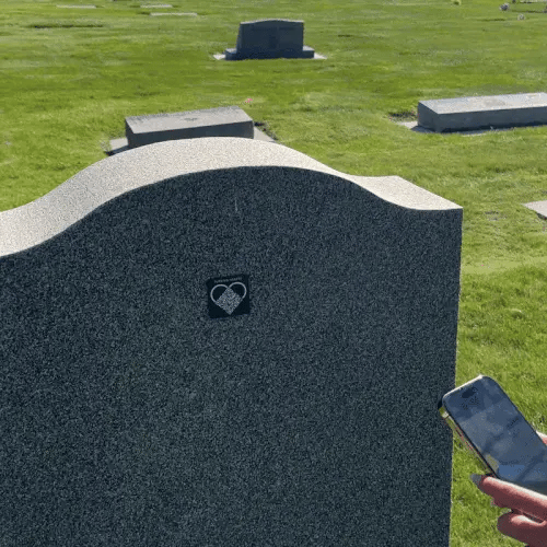 The QR scan requires a data connection to load the profile page. Most cemeteries have cell coverage; if not, the page will open once the device reconnects.